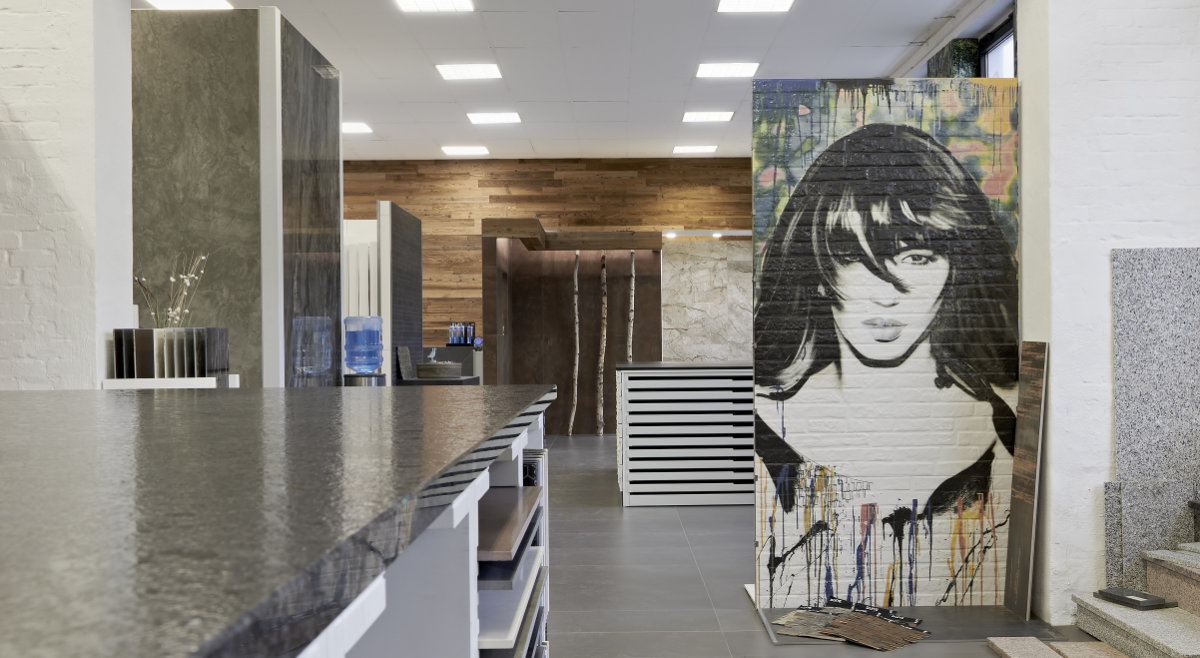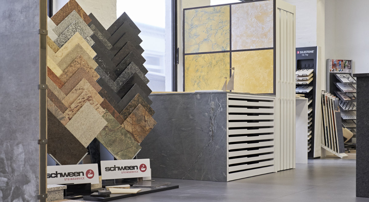 Auch fertigen und verkaufen wir u. a. individuelle Waschtische, Duschrückwände und Küchenarbeitsplatten aus Naturstein, Keramik und Quarzkomposit.